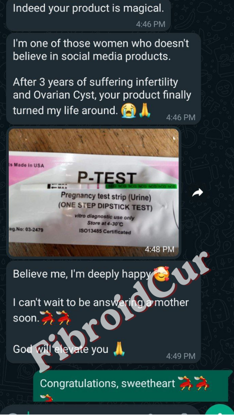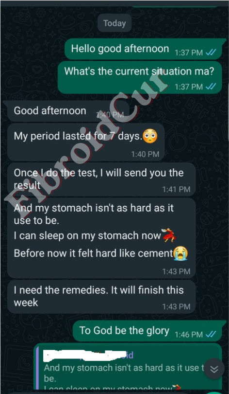 Rose immediately recommended the New Fibroid Treatment. I informed my husband about it, and he was reluctant at first but couldn’t watch me go through the fibroid pain again.