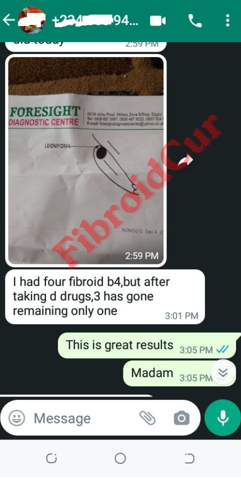 Don’t take my word for it.. Below are other women who have benefited from this the Fibroid Treatment (FibroidCur Capsule& FibroidCur Tea) :